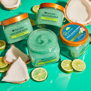Аромат скраба Tree Hut Coconut Lime — это восхитительное сочетание нот пальмовых листьев, лайма и кокоса, которое перенесет вас на белоснежные пляжи Карибского моря.
